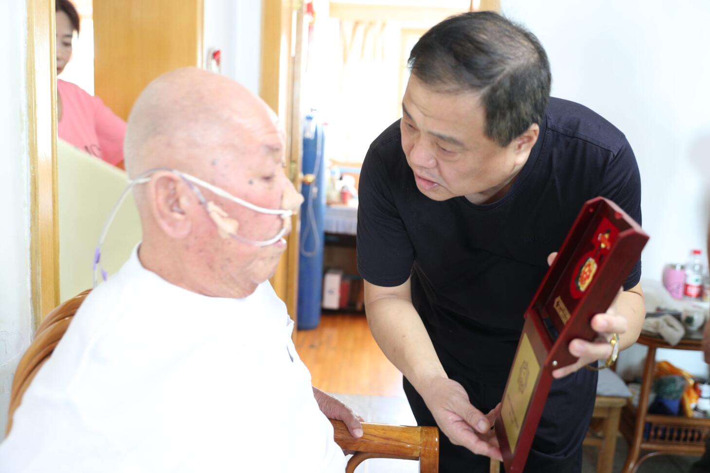 9月23日上午,青島安裝建設(shè)股份有限公司紀(jì)委書記、工會主席李金通與相關(guān)同志帶著上級領(lǐng)導(dǎo)部門和公司領(lǐng)導(dǎo)的重托,將這枚閃耀著光輝象征與最高榮譽(yù)的獎?wù)滤偷搅艘娮C共和國誕生和發(fā)展奇跡并為之做出突出貢獻(xiàn)的全國勞模賀再奎及家人手中。感謝他為祖國和人民的無私奉獻(xiàn),更感謝他為青島安裝公司帶來的無尚榮耀。